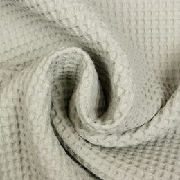 Een goede volle katoenen wafelstof met een diep relief van vierkantjes (6mm). Dubbeldraads geweven met een dimensionale wafelstructuur die niet scheurt.Mooi te gebruiken voor omslagdoek of dekens voor baby's, badjassen, keukentextiel, gordijnen, decoratie enz.