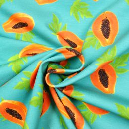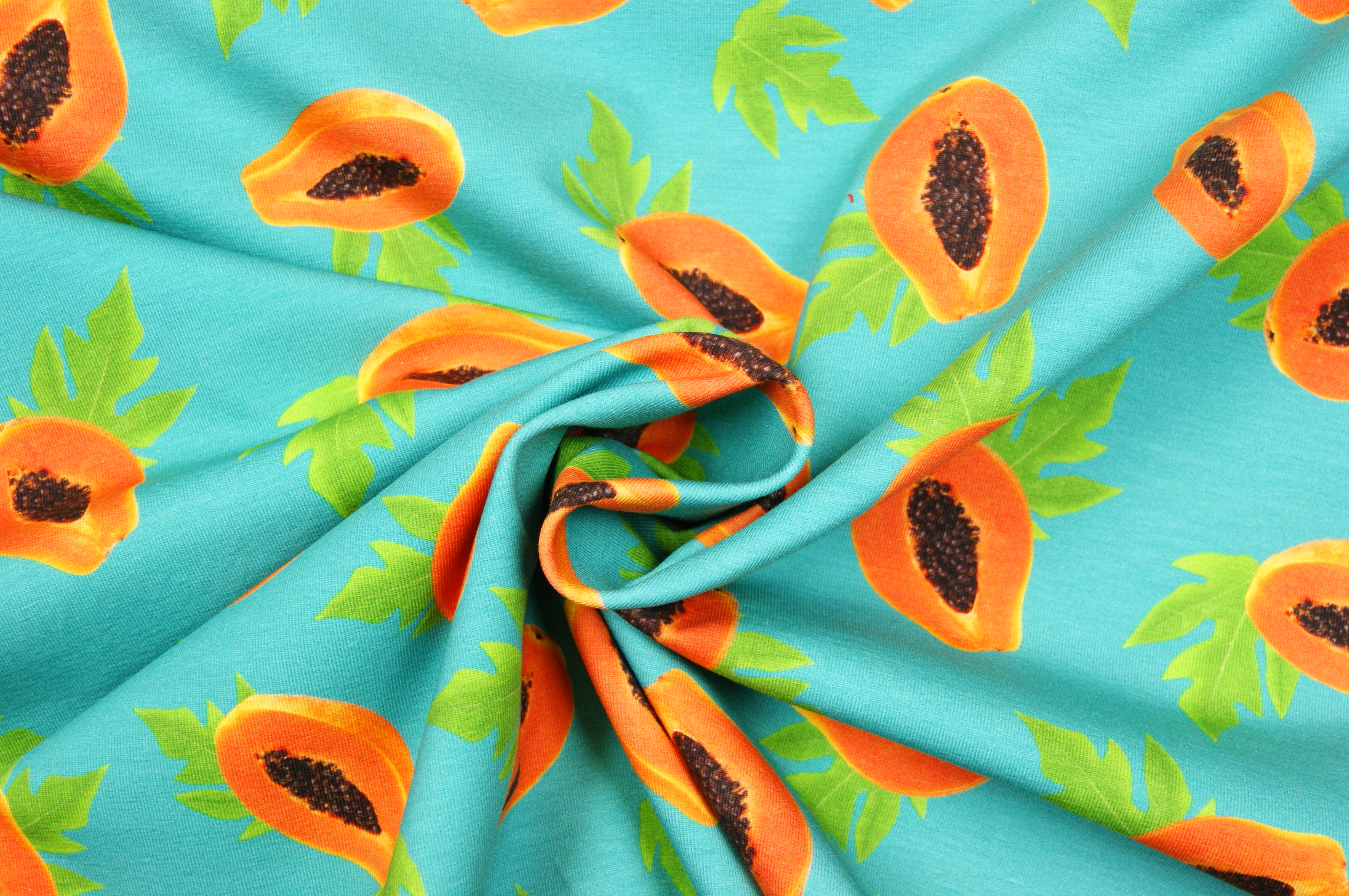 Mooie soepel vallende, goed rekbare katoenen tricot met een digitale print, voor het maken van een jurkje, shirt, rokje enz. Ook geschikt voor decoratiemateriaal.