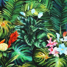 Mooie soepel vallende, goed rekbare katoenen tricot met een digitale print, voor het maken van een jurkje, shirt, rokje enz. Ook geschikt voor decoratiemateriaal.