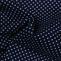 Mooie soepelvallende donkerblauwe stof met kleine witte stippen. Bedrukte stof, gemaakt van 100% katoen. Geschikt voor o.a. kleding, beddengoed, gordijnen en decoratie.