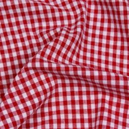 Boerenbont stof in de kleuren rood en wit. Deze ruitjes stof is gemaakt van 100% katoen en valt mooi soepel. De ruitjes zijn 5 mm breed. Mooie geweven stof met witte en rode draden. Beide zijden van de stof zijn hetzelfde.