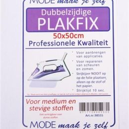 Dubbelzijdige plakvlieseline (vel 50x50cm), geschikt voor applicaties, repareren van scheuren en zomen van medium en stevige stoffen.