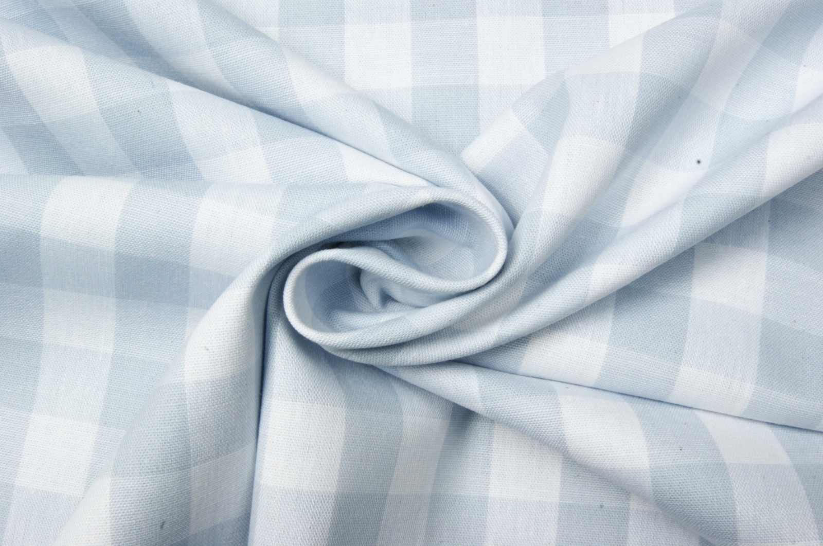 Boerenbont stof in de kleuren lichtblauw en wit. Deze ruitjes stof is gemaakt van 100% katoen en valt mooi soepel. De ruitjes zijn 20 mm breed. Mooie geweven stof met witte en lichtblauwe draden. Beide zijden van de stof zijn hetzelfde.