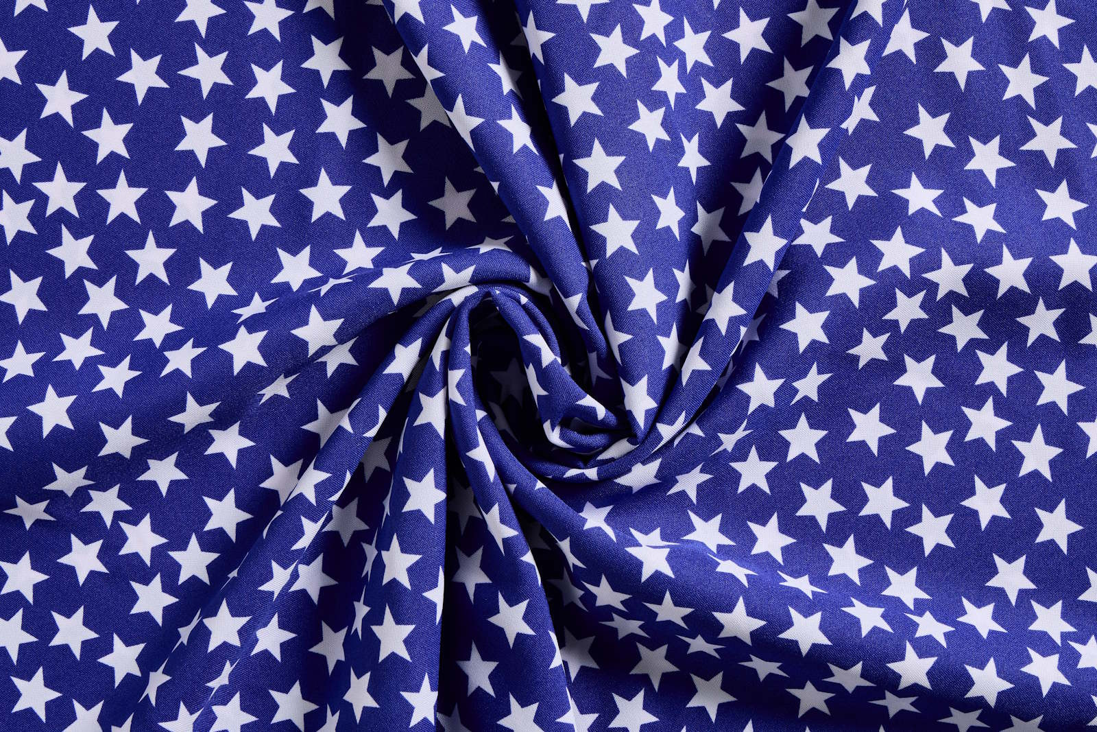 Blauwe Terlenka stof met witte sterren. Terlenka is een makkelijk te verwerken stof. De stof is krimpvrij, kreukvrij en kleurecht.