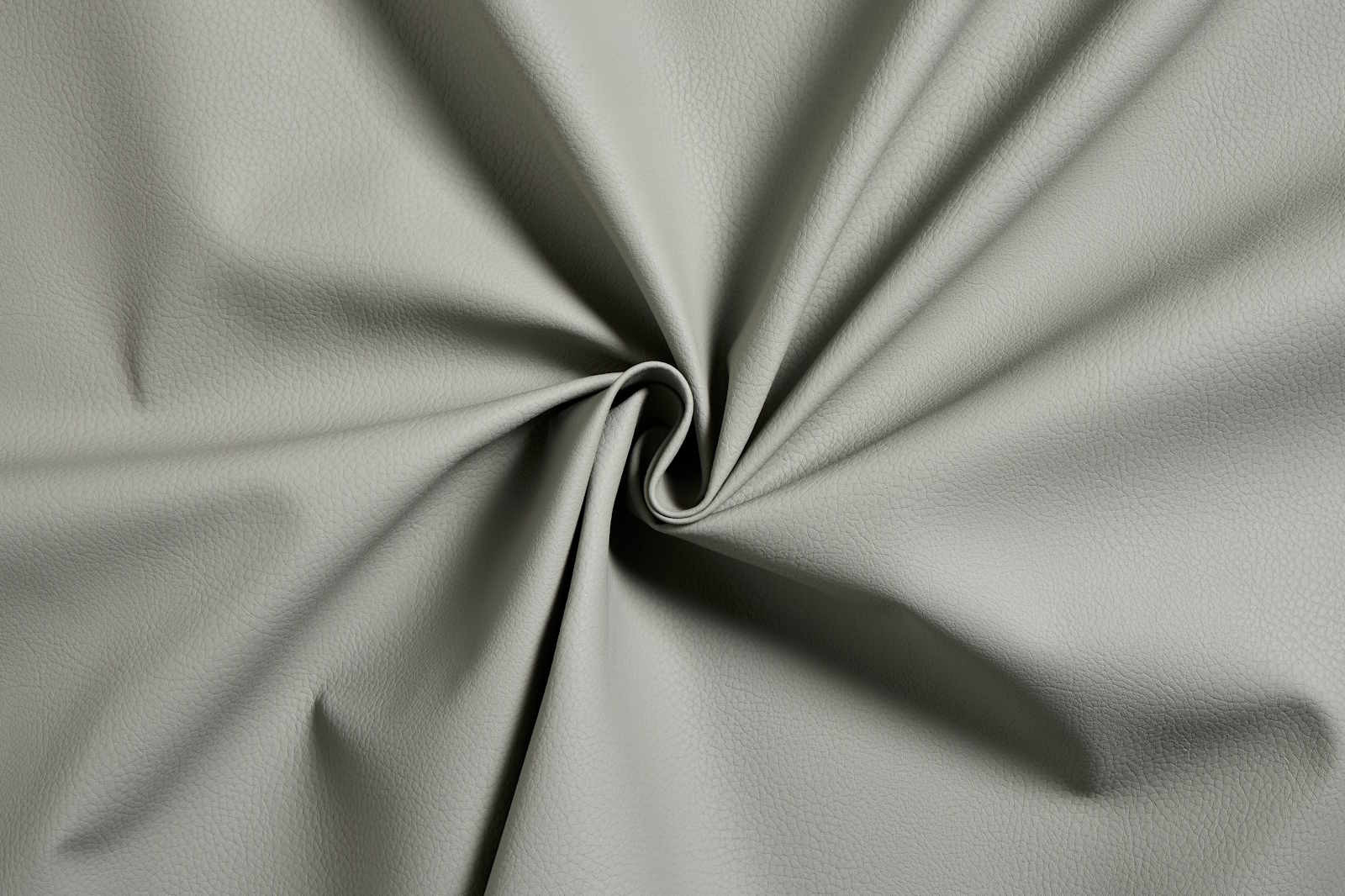 Stevig en glad grijs kunstleer (skai leer). Geschikt voor binnen en buiten. Zeer slijtvast, soepel en waterdicht kunstleer. Makkelijk te verwerken en te naaien.