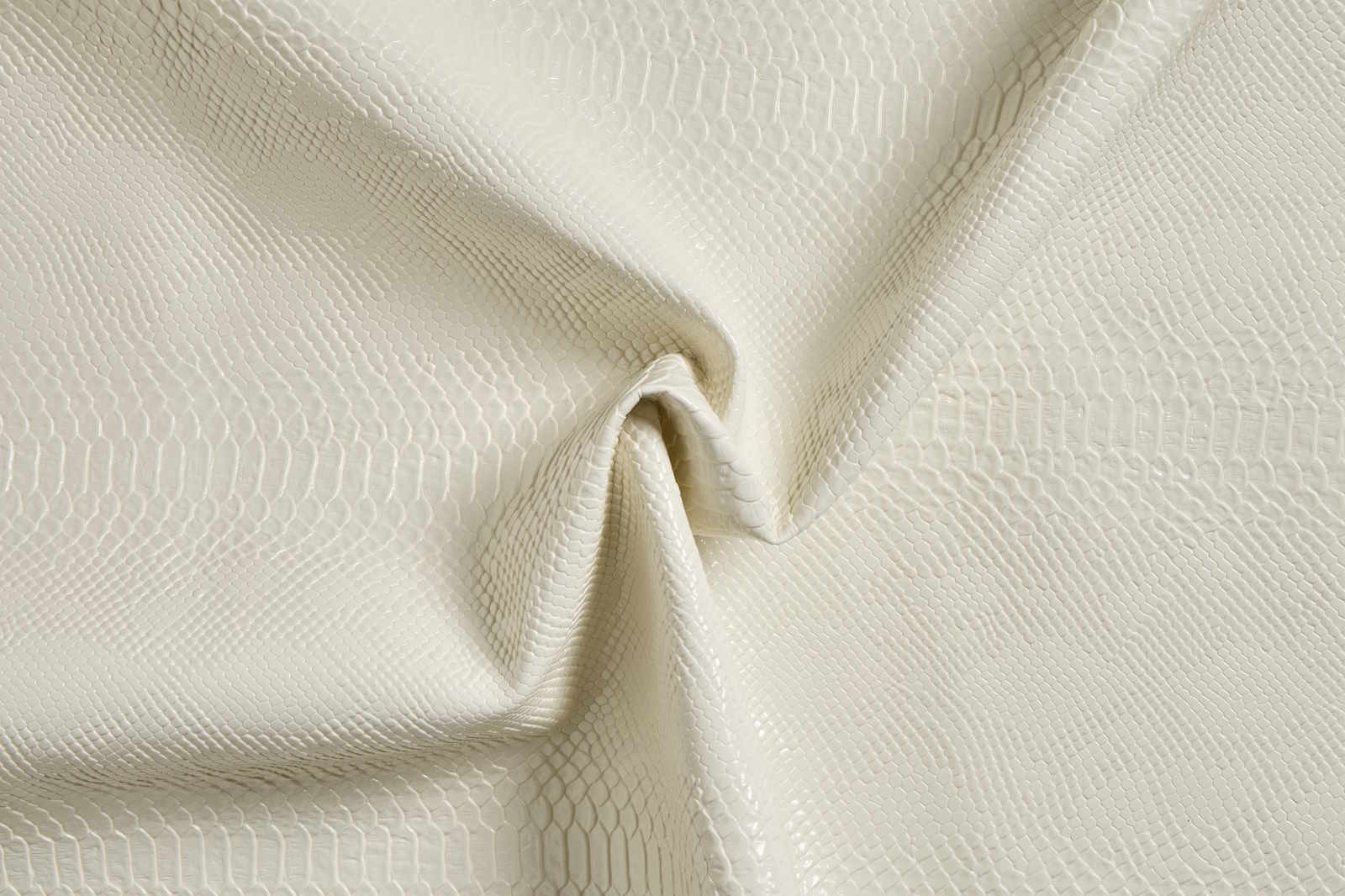 Kunstleer met slangenprint in stijlvolle off-white kleur. Deze slangenprint heeft een realistische structuur. Geschikt voor binnen en buiten. Zeer slijtvast, soepel en waterdicht kunstleer. Makkelijk te verwerken en te naaien.