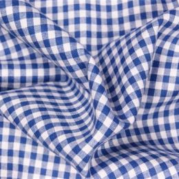 Boerenbont stof in de kleuren kobaltblauw en wit. Deze ruitjes stof is gemaakt van 100% katoen en valt mooi soepel. De ruitjes zijn 5 mm breed. Mooie geweven stof met witte en blauwe draden. Beide zijden van de stof zijn hetzelfde.